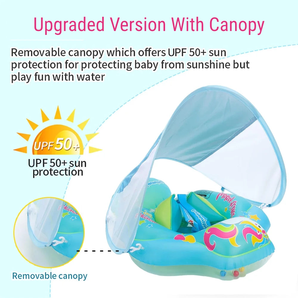 Inflatable Baby Swim Ring With Canopy: Toddler Float for Water Fun