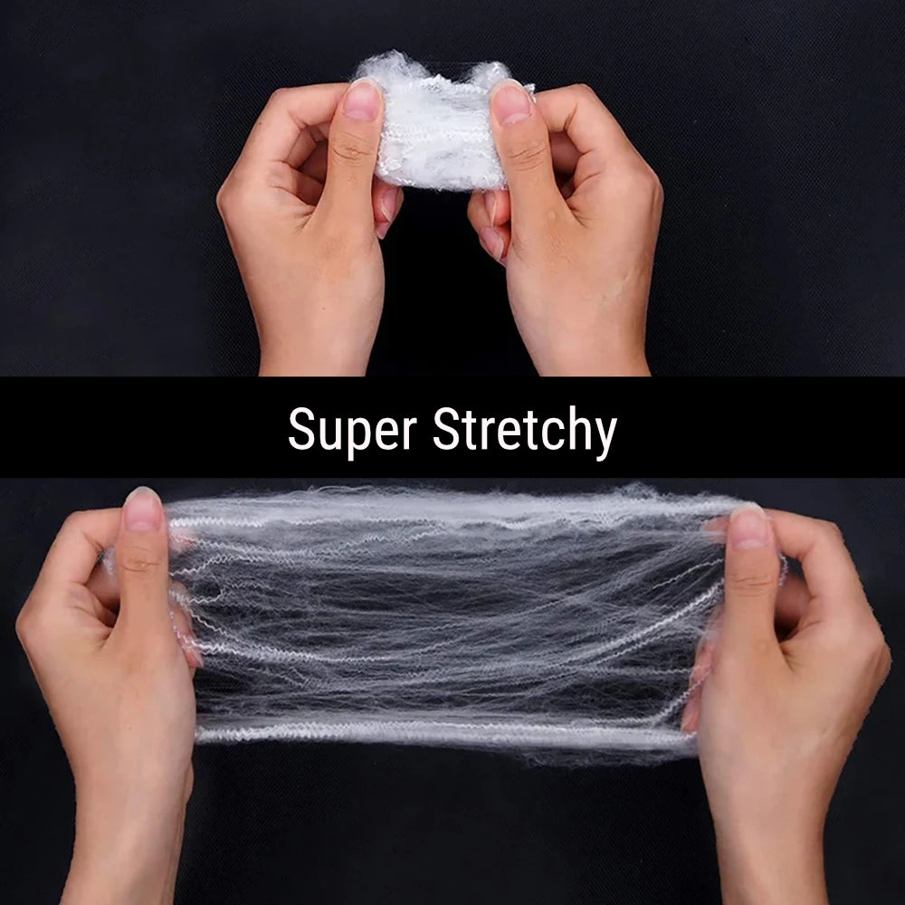 Polyester-Cotton fibre artificial spider webs create a chilling effect perfect for Halloween and horror-themed decor.