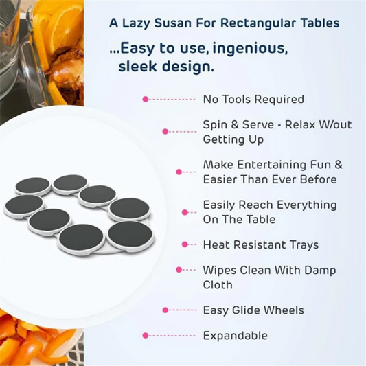 Maximize your kitchen and dining table space with the Expandable Lazy Susan Turntable. This rotating storage rack is perfect for organizing and serving multiple dishes, offering easy access and convenience for every meal.