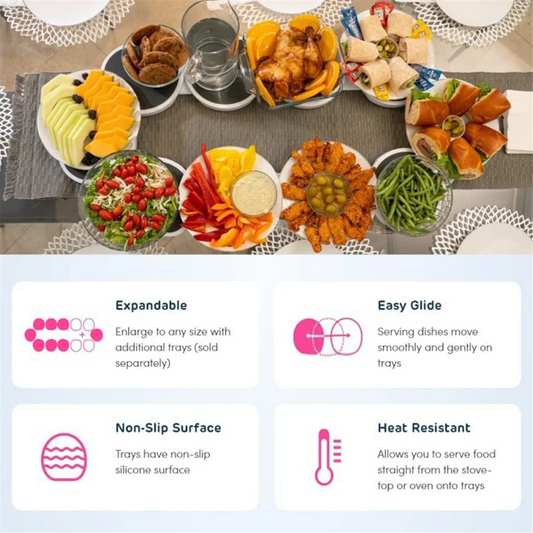 Heat-resistant surface handles high temperatures, ideal for moving dishes from oven to table, while the non-slip silicone keeps items securely in place and makes clean-up effortless.