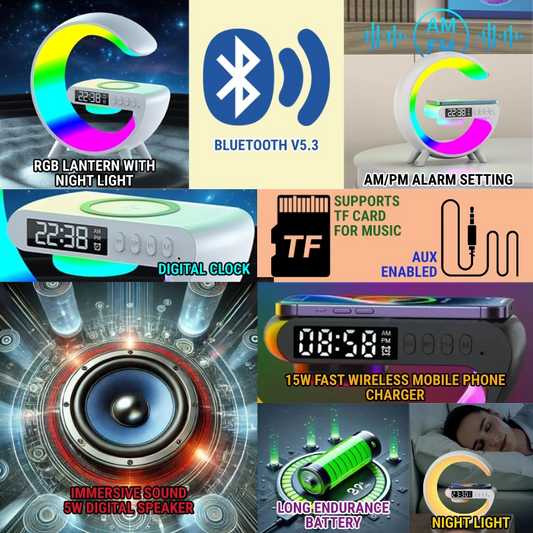 - Type: 15W Wireless Charger Stand | Bluetooth Speaker & RGB Light