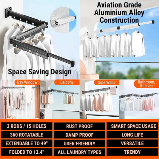 Aluminium Alloy Extendable Wall-Mounted Drying Rack: Space-Saving Retractable Laundry Solution