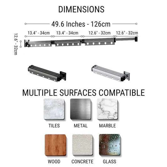 Effortlessly save space with this wall-mounted, foldable clothes drying rack made from durable aviation aluminium alloy. Designed for modern interiors, it’s ideal for balconies, bathrooms, or bedrooms, and offers easy installation with a nail-free adhesive. Perfect for compact living, it provides a practical and stylish drying solution.