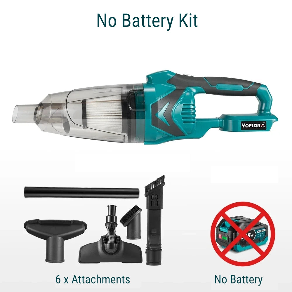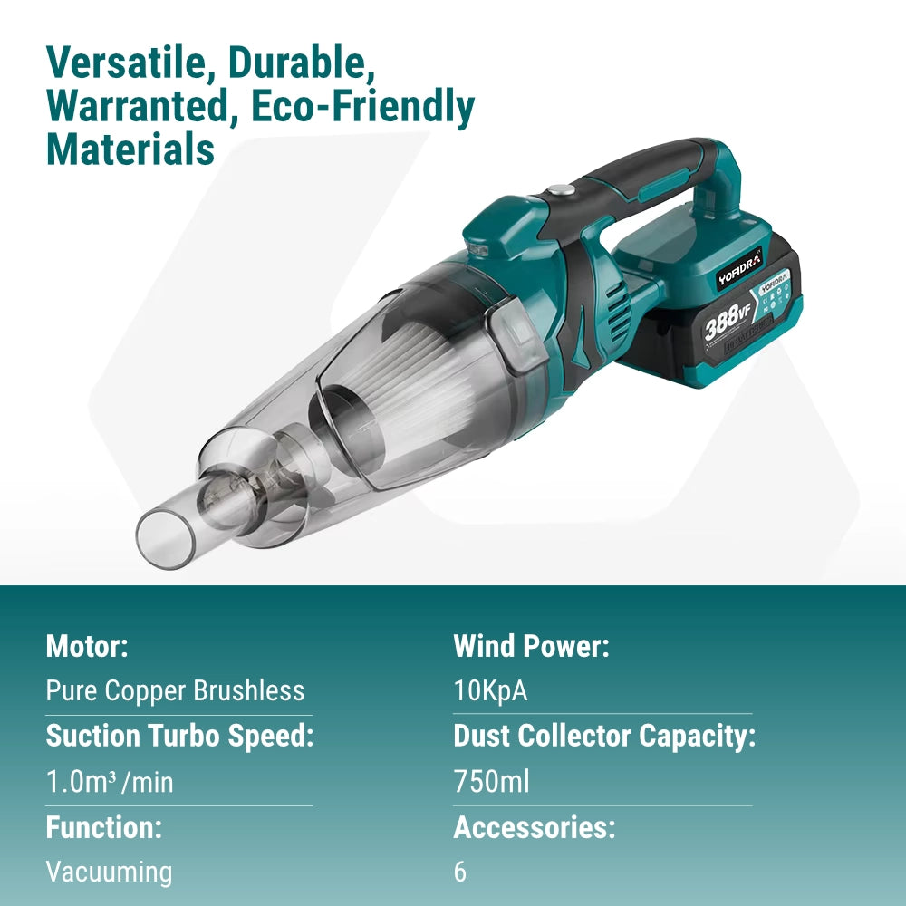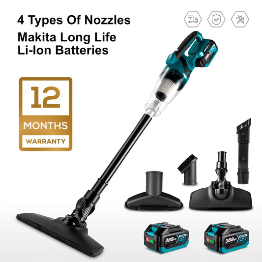 This 1500W cordless handheld vacuum, compatible with Makita 18V batteries, offers strong suction, a 750ml tank, LED light, and ergonomic design. With cyclonic action for lasting suction, washable filters, and multiple attachments, it’s ideal for versatile, thorough cleaning indoors and out.